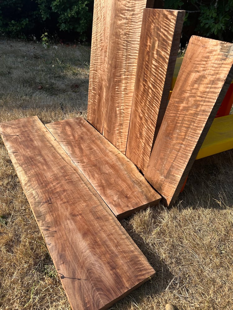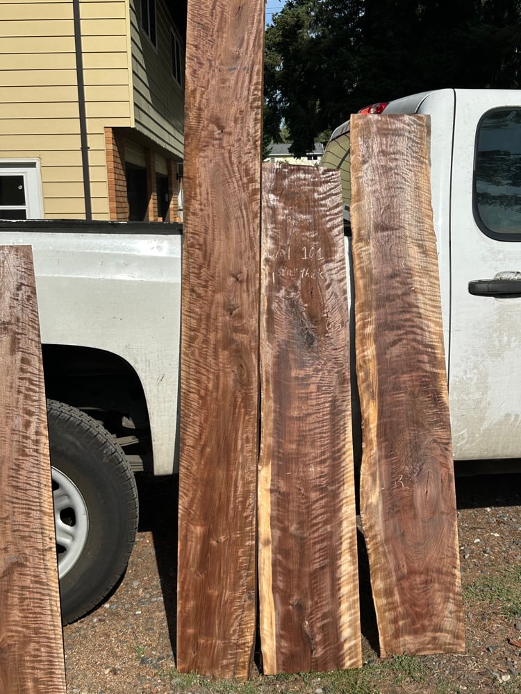 Hi I have a lot. Mostly you’ll find 4/4- 8/4 boards but a few slabs are also figured. Stock changes often.